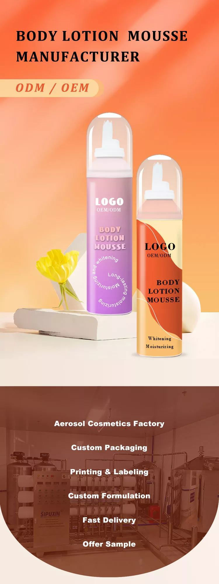 Wilson Cloud Cloud làm sáng cơ thể hydrat hóa Body Lotion Mousse là một loại kem dưỡng ẩm lâu dài có thể được hấp thụ vào cơ thể. Mousse của chúng tôi xuất hiện ở dạng aerosol trong một lon nhôm, tạo ra một loại bọt biển phong phú khi được ép. So với cảm giác nặng nề và dính của các loại kem dưỡng da truyền thống, cơ thể của chúng ta mang đến một nét nhẹ, giống như một đám mây mềm mại và dày đặc. Ngoài ra, chúng tôi có nhiều công thức để lựa chọn, ví dụ, bạn có thể thêm vào công thức chứa các chiết xuất dưỡng ẩm hiệu quả cao như nhiều axit hyaluronic, chiết xuất thực vật tự nhiên, v.v. Da được giữ ẩm từ trong ra ngoài.