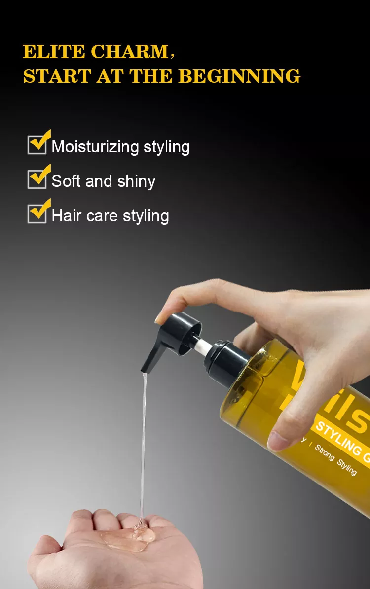 Gel tạo kiểu tóc liền mạch siêu mịn dành cho nam Wilson mỹ phẩm đề cập đến tác dụng tạo kiểu tóc và chỉnh sửa của mỹ phẩm, được xịt hoặc bôi lên tóc, dung môi bay hơi và sấy khô trên tóc để tạo thành một lớp màng trong suốt, để sợi tóc cứng lại và duy trì hình dạng nhằm mục đích đáp ứng nhu cầu của nhiều kiểu tóc khác nhau.