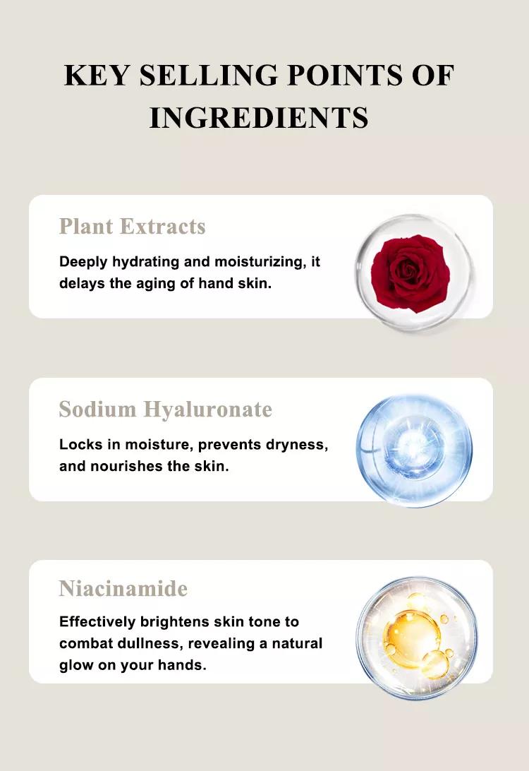Sau khi sử dụng Kem dưỡng da tay hấp thụ nhanh, làn da trở nên mỏng manh hơn, nếp nhăn giảm đi và hàm lượng nước trong da tăng lên. Kem dưỡng da tay phù hợp cho nhiều dịp khác nhau trong cuộc sống hàng ngày, đặc biệt đối với những người thường xuyên rửa tay, tiếp xúc với chất tẩy rửa hoặc tiếp xúc với môi trường khô, lạnh. Cho dù chăm sóc tại nhà, văn phòng hay hoạt động ngoài trời, việc thoa kem tay kịp thời sẽ bảo vệ bàn tay của bạn một cách hiệu quả và duy trì làn da khỏe mạnh, trẻ trung.